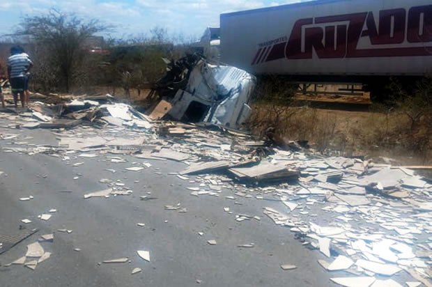 Um caminhão colidiu contra outro que estava parado na BR 116/Norte no final da tarde de domingo, 11, nas imediações do povoado de São Bento, zona rural do município de Canudos.
