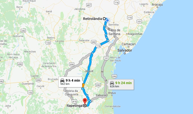 O torcedor retirolandense que desejar pegar a estrada até Itapetinga vai precisar percorrer 562 km sendo o trajeto mais perto pela BR 116 e a duração da viagem em torno de 09h.