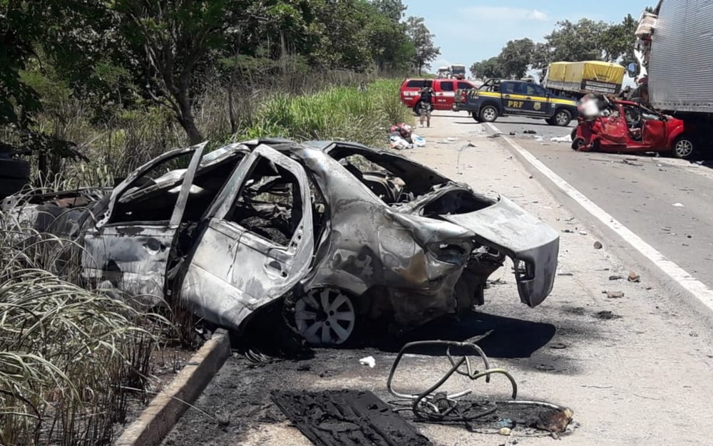 Em Carazinho (RS), quatro pessoas morreram em um acidente entre um carro e um ônibus. O passageiro do ônibus que morreu estava sem cinto de segurança e foi arremessado do veículo.