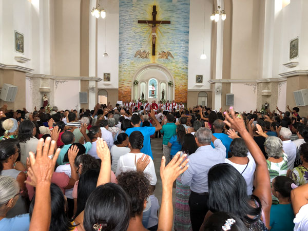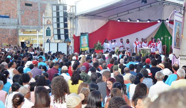 A agenda religiosa prosseguiu na parte da tarde com adoração ao Santíssimo Sacramento acompanhada da acolhida à imagem de Santa Luzia depois de 70 dias de peregrinação tendo passado pela casa de 70 famílias, que marcou os 70 anos de júbilo e em seguida aconteceu a missa campal celebrada pelo padre Alexandre Aquino, pároco do municipio. A celebração foi a preparação para procissão.