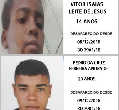 Dois jovens, que estavam desaparecidos desde o último domingo (9), foram encontrados mortos no final da manhã desta quarta-feira (12), em um matagal na Fazenda Diamante, no município de Anguera. Vitor Isaias Leite de Jesus, 14 anos, e Pedro da Cruz Ferreira, 20, moravam em Feira de Santana. A queixa do desaparecimento foi registrada da 2ª Delegacia Territorial.