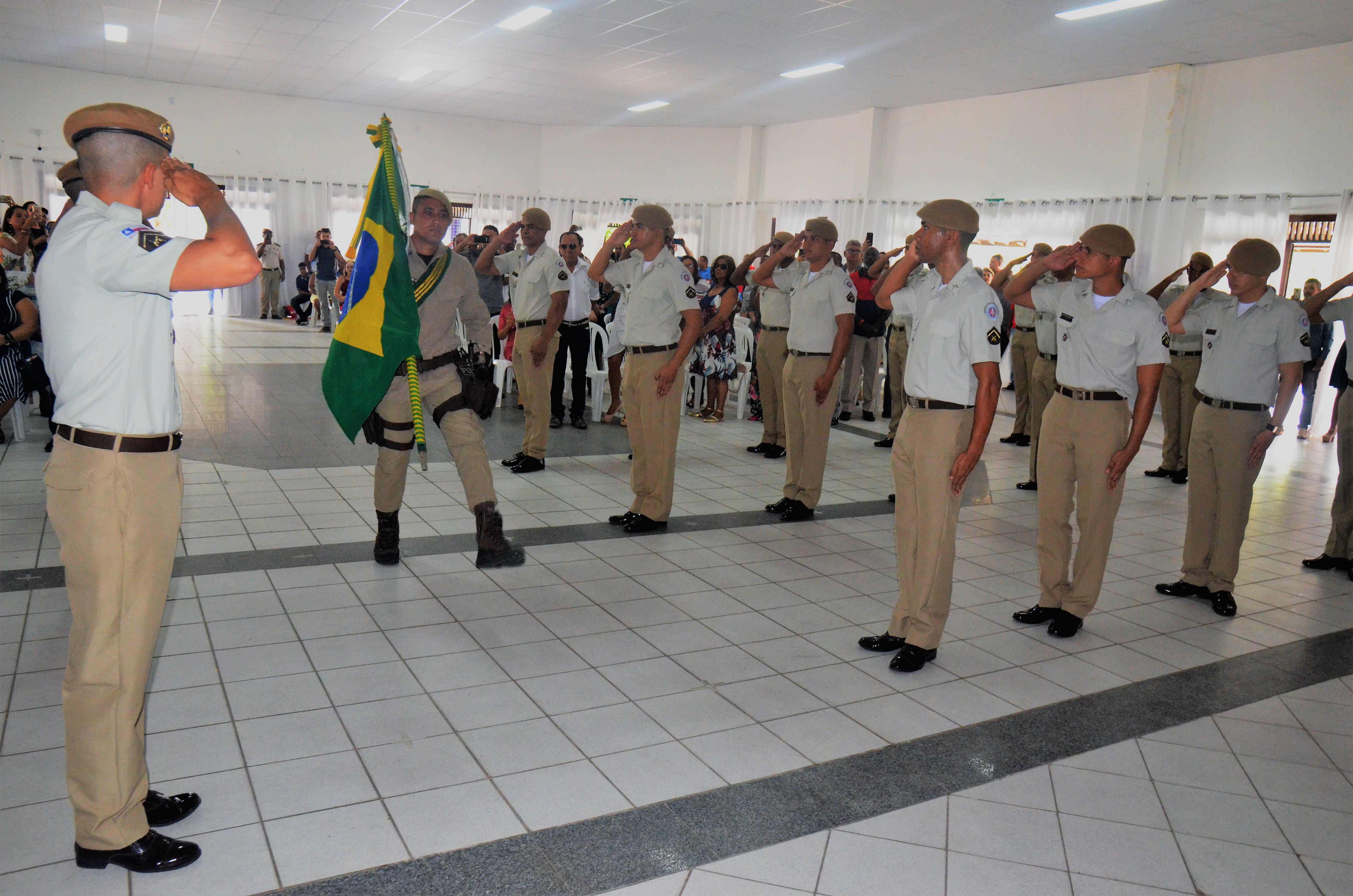 Após prestarem compromisso e o juramento perante o Pavilhão Nacional, símbolo máximo da Nação Brasileira, os formandos desfilaram em continência às autoridades presentes, fechando o ato solene com o especial “Fora de Forma”, momento muito esperado, quando os concluintes proferiram a Oração do Policial Militar, e com muita alegria e emoção, jogaram ao ar os gorros em sinal de realização de vitória pessoal e profissional.