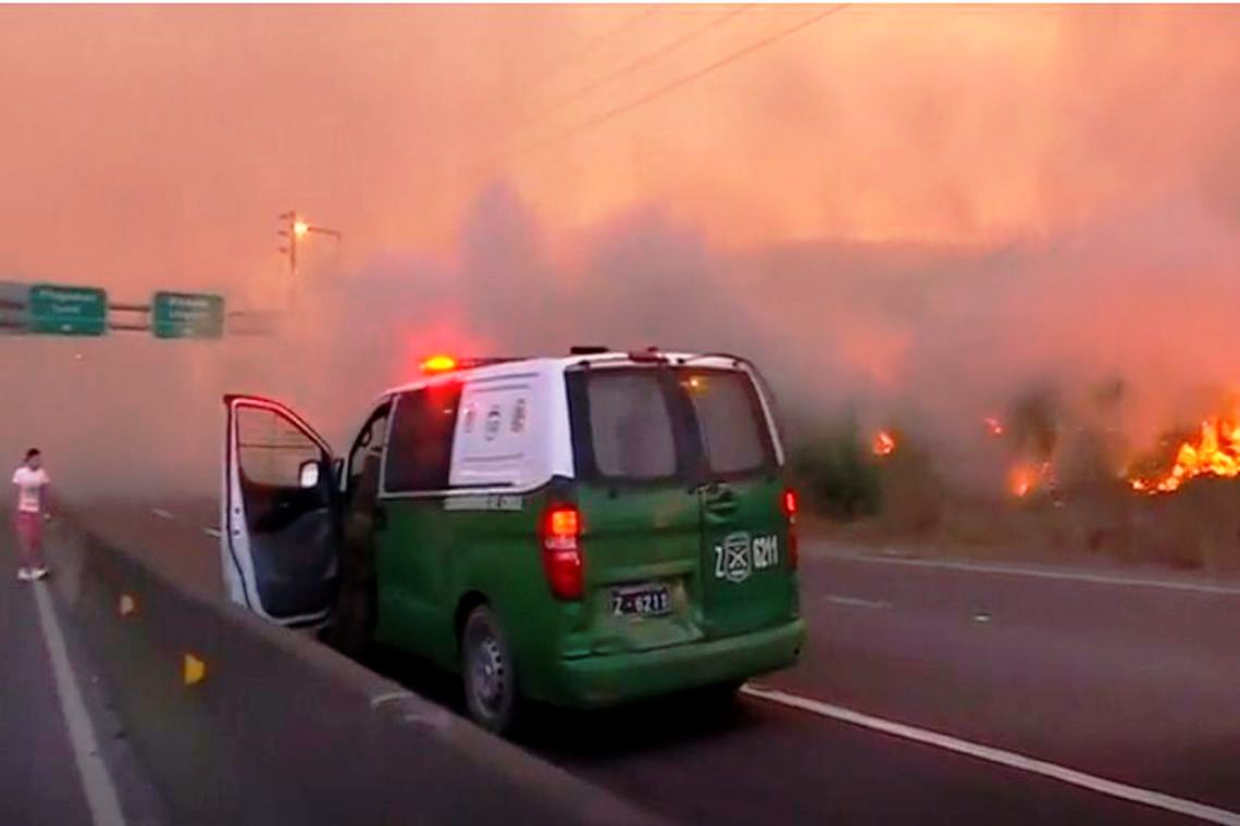Um incêndio atinge a encosta do Cerro San Cristóbal, um dos principais pontos turísticos de Santiago, capital do Chile. No local, há um conjunto de montanhas que forma o Parque Metropolitano de Santiago, um dos maiores do mundo, com 722 hectares de extensão.