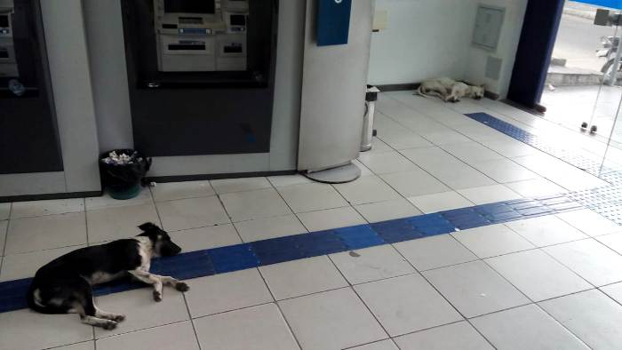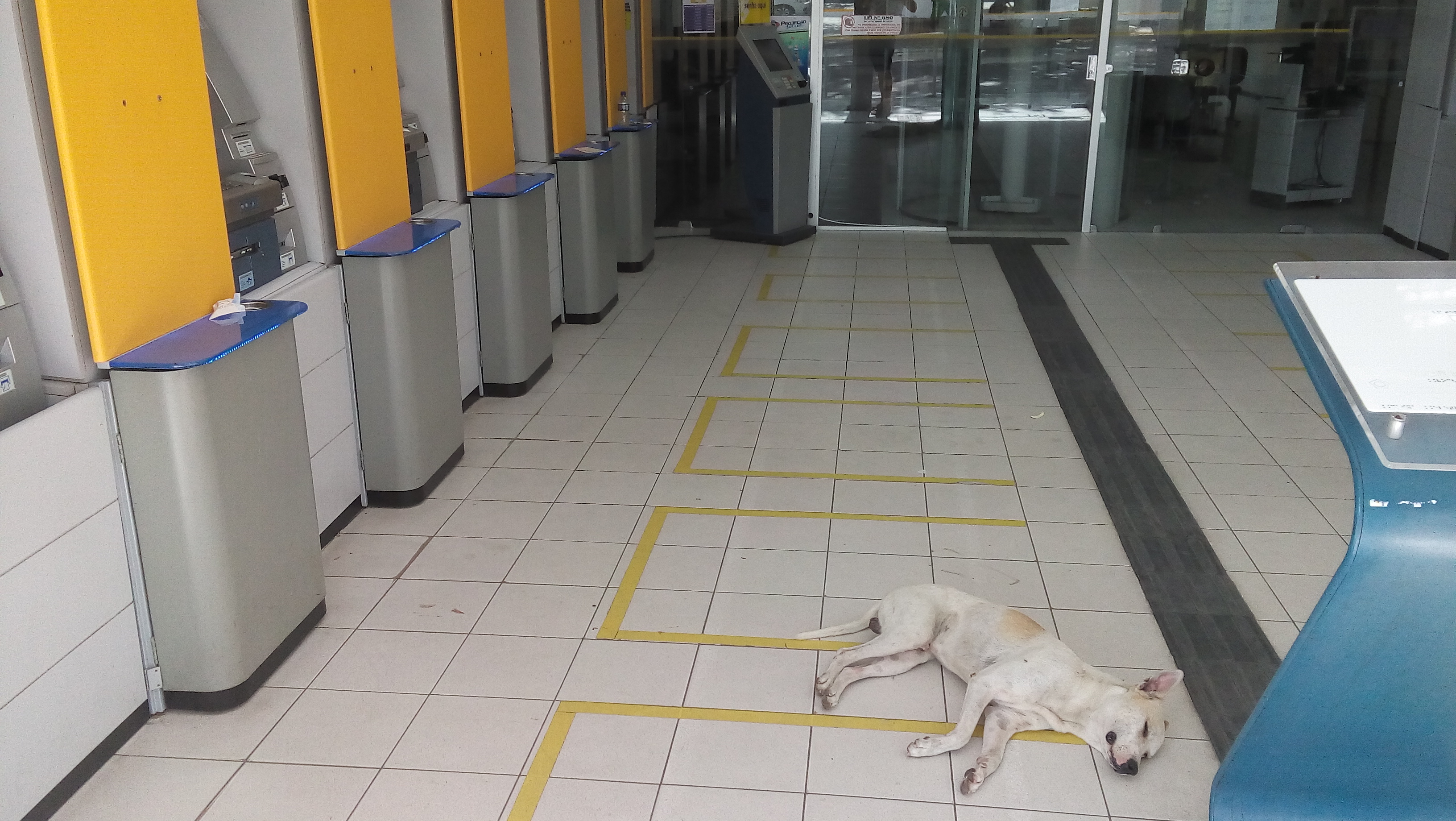 O Calila Noticias registrou no mês passado um cachorro ‘no último sono’ no Banco do Brasil. Foto abaixo