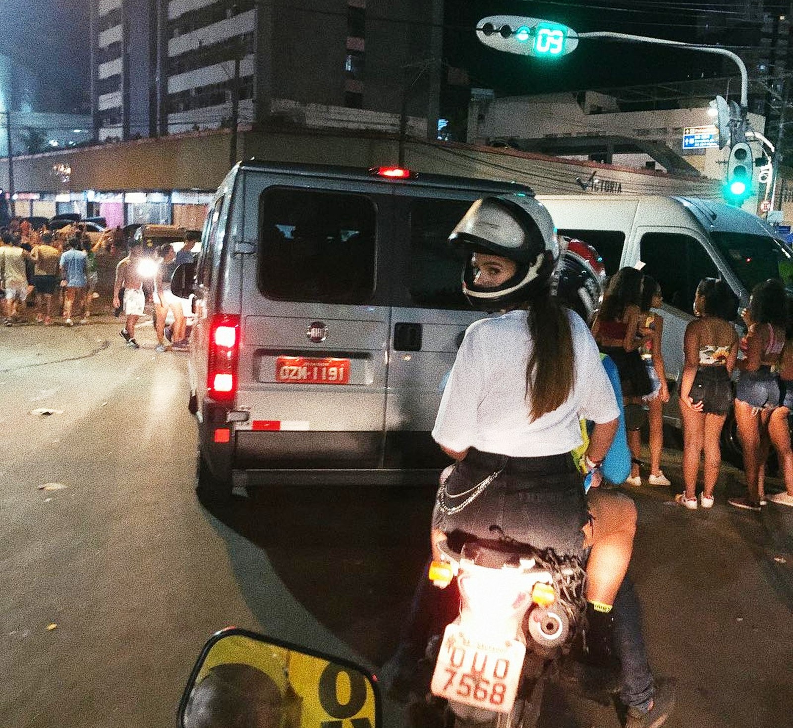 A atriz Bruna Marquezine pegou um mototáxi para voltar para o hotel onde está hospedada em Salvador, na madrugada deste domingo (3), após curtir um dia inteiro de carnaval na cidade.