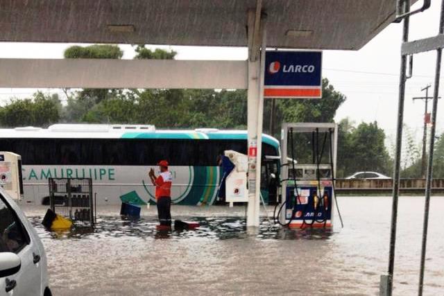 Quem trafegou pela BR-324, sentido Feira de Santana, no trecho da cidade de Amélia Rodrigues, no início da tarde deste domingo (24), enfrentou trânsito lento e pista bastante alagada por conta da chuva.