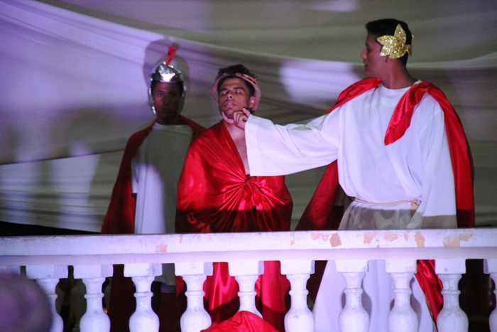 A encenação envolveu cerca de 40 jovens que ensaiaram a peça exclusivamente para esta apresentação. Ana Almeida da Comunidade Shalon e membro do Encontro de Jovem com Cristo foi uma das coordenadoras da peça e segundo ela, a turma correspondeu as expectativas, mesmo não sendo um grupo profissional que já tenha atuado em outras peças conseguiram mostrar um grande trabalho.