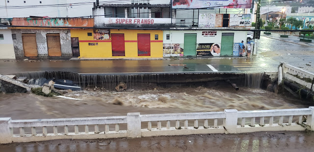 No centro da cidade ocorreu o desabamento de um cais e parte da balaustrada do Rio do Ouro, próximo a Praça Castro Alves. A chuva foi tão forte que as águas passaram sobre o Sambódromo da Matriz, arrastando carros e alagando residências e comércios no centro da cidade.