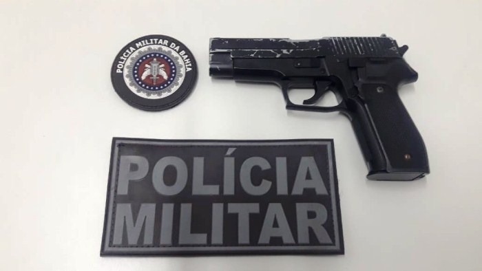 Policiais militares do motopatrulhamento da 4ª Companhia de Conceição do Coité foram solicitados por volta das 10h desta quinta-feira, 11, por um preposto da Escola João Paulo Fragoso para se dirigirem aquela unidade onde um aluno, menor de idade estaria portando uma arma de fogo. Ao chegar no local a guarnição abordou o jovem e encontrou em seu poder um simulacro (arma de brinquedo) de uma pistola Air Soft.