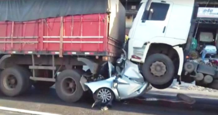 A BR-040 foi liberada por volta das 21h de quinta-feira (11) após um acidente na altura do Bairro Califórnia, na Região Noroeste de Belo Horizonte, próximo ao acesso do Anel Rodoviário. No engavetamento, duas carretas prensaram um carro, que ficou completamente destruído.