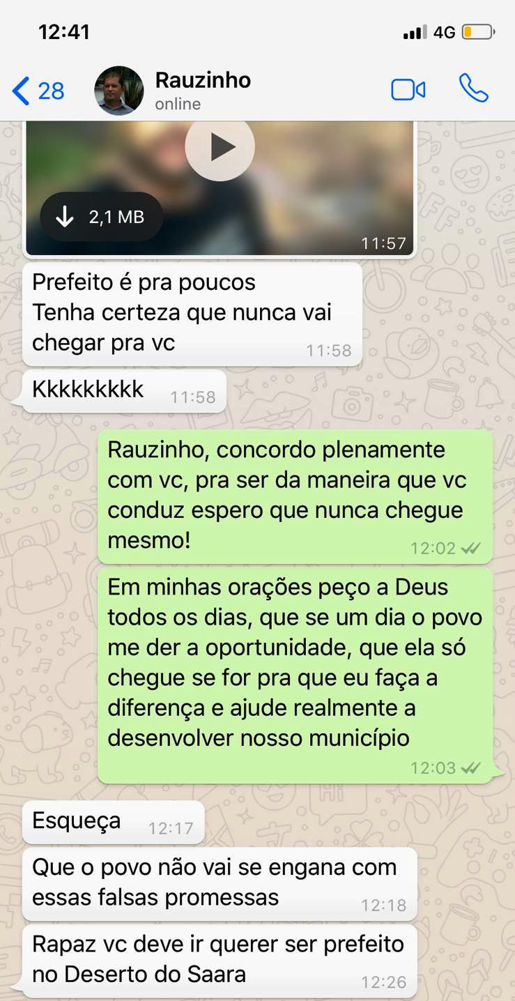 Após a publicação o prefeito Raul Soares Moura Junior, “Rauzinho” PSD respondeu com certa ironia a publicação de Neto, afirmando que “prefeito é pra poucos. Tenha certeza que nunca vai chegar pra você. Kkkkkkkk”.