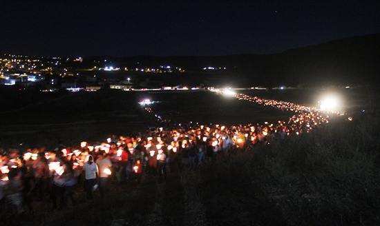 Um verdadeiro espetáculo pode ser visto na procissão, principalmente na subida do monte onde a pouca iluminação artificial (luz elétrica) perde espaço para a luz de vela formando uma longa fila com mais de 10 mil pessoas.