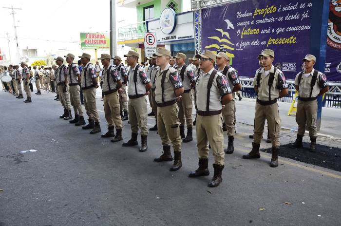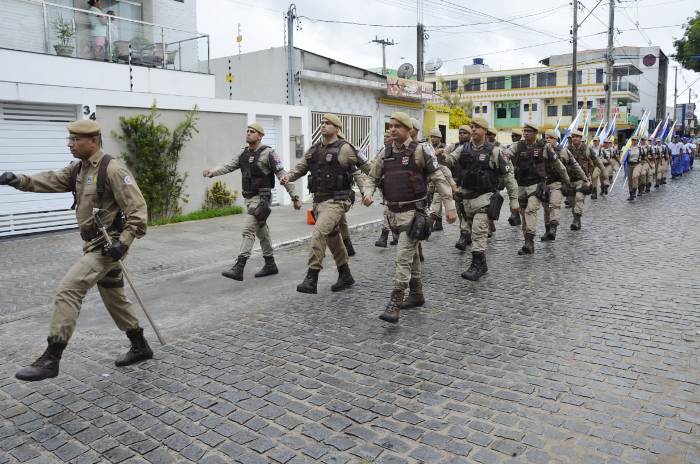 O desfile foi composto por seis pelotões, dentre eles o do policiamento ordinário, da Companhia de Emprego Tático Operacional – CETO, de policiais femininas, os veteranos, o pelotão motorizado e alunos do Colégio da Polícia Militar.