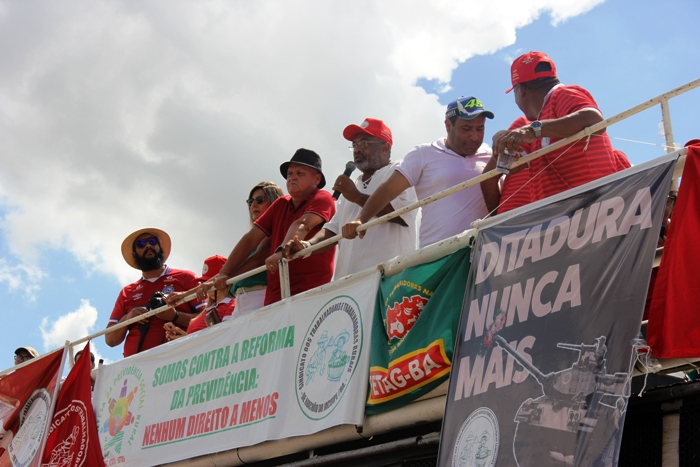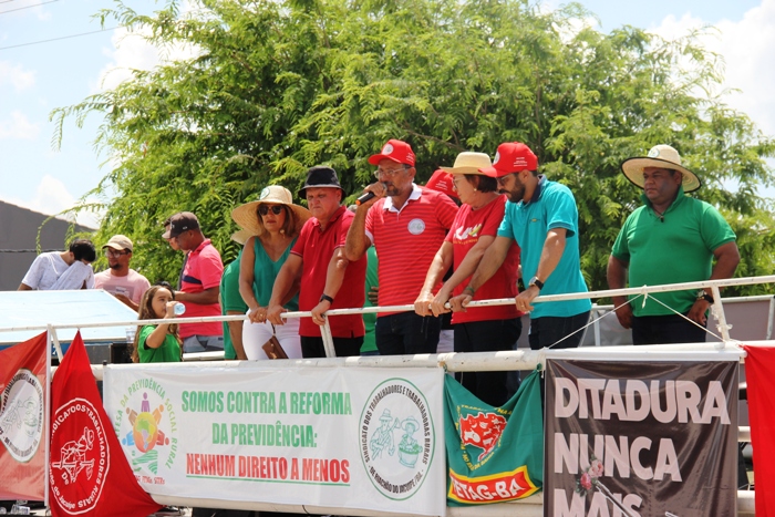 Há mais de duas décadas o Sindicato dos Trabalhadores Rurais,Agricultores e Agricultoras Familiares de Riachão do Jacuipe mantém uma das mais tradicionais comemorações do 1º de Maio, dia Mundial do Trabalho quando reúne milhares de trabalhadores do campo e da cidade para comemorar a data e ao mesmo tempo protestar, reivindicar, lutar e dizer não ao que consideram prejudicial a classe trabalhadora e nesta quarta-feira, todas as lideranças politicas e sindicais que fizeram uso do microfone de um trio elétrico que saiu da frente do Sindicato até a Praça Landulfo Alves condenaram a reforma da previdência.