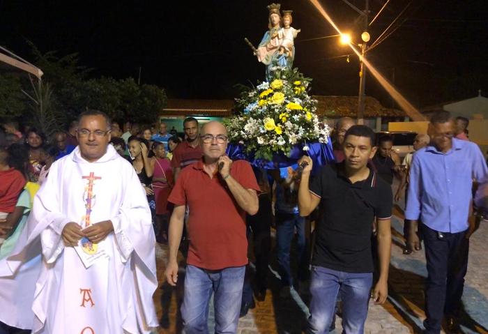 Ao lado do prefeito, Valdemi participou do encerramento da festa da padroeira da comunidade do Coqueiro, celebrada pelo padre Jairo Lobo.