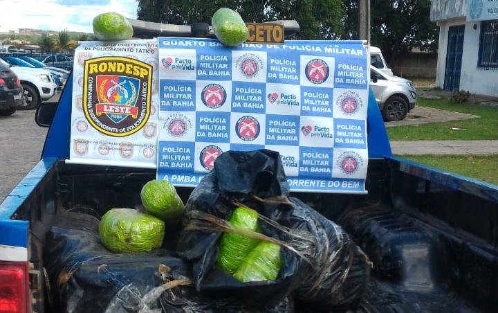 Cerca de meia tonelada de maconha foi apreendida, nesta quarta-feira (1º), em uma ação conjunta da Polícia Militar da Bahia. Os entorpecentes e também uma pistola calibre 9 mm (uso restrito) foram encontrados, na cidade de Araçás na região de Alagoinhas.