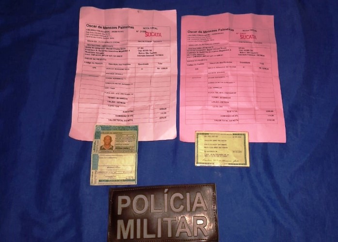 Foi encontrada uma placa, licença de Feira de Santana e ao realizar a consulta verificou que a mesma possui restrição de furto ou roubo. As motocicletas estavam com notas fiscais falsas.