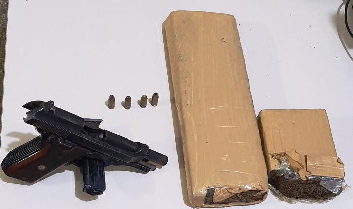 Os policiais militares da CIPE Nordeste, juntamente com policiais da 2ª CIA do 5º BPM/Euclides da Cunha, foram ao local indicado, momento em que, um indivíduo, posteriormente identificado como Marcelo Matos de Jesus, conhecido como “Marcelo Sem Freio”, de 24 anos, natural de Araci, contumaz na prática de crimes, foi flagrado pelos policiais militares, portando uma pistola de calibre .380 e dois tabletes de maconha totalizando, 1,25 kg.