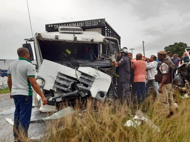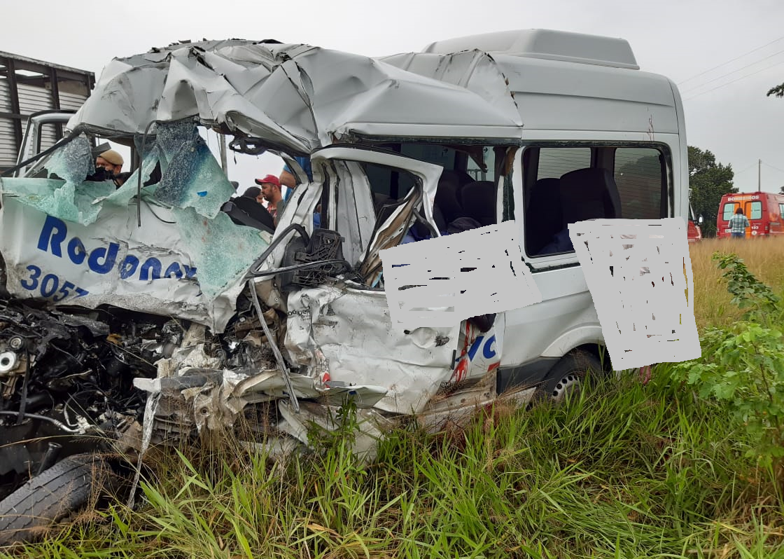 De acordo com o sargento PM Rogério, um caminhão de transporte de carga animal colidiu com uma van que transportava funcionários de uma empresa de frango do município de São Gonçalo dos Campos.