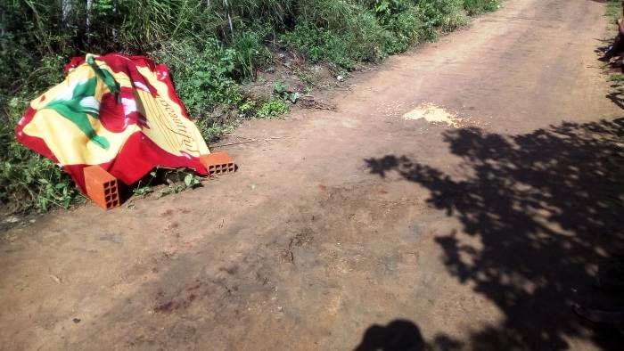 Populares disseram aos policiais que dois indivíduos não identificados a bordo de uma motocicleta Honda Bros foram os autores do homicídio.