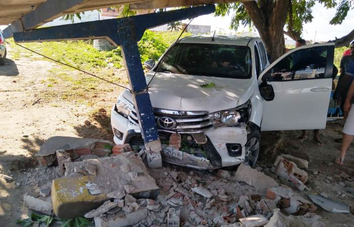 Uma caminhonete Toyota Hilux de dados ignorados, assim como também a identidade do condutor perdeu o controle e atingiu em cheio um ponto de ônibus localizado às margens da BA 120, Bairro Açudinho, em Conceição do Coité saída para Retirolândia. O acidente aconteceu por volta das 15h deste domingo,14.