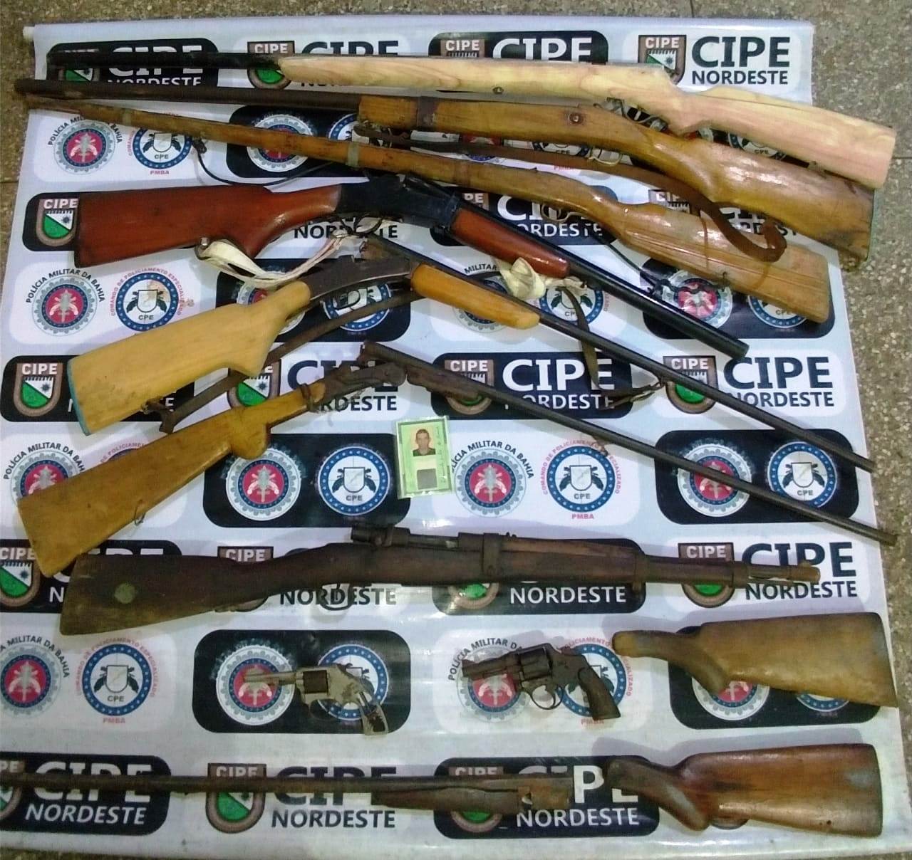 De acordo com o major Wellington Morais comandante da Cipe Nordeste, de imediato, a guarnição foi até o local denunciado, onde constatou a veracidade dos fatos, tendo sido encontradas várias armas de fogo, dos mais diversos calibres, dentre elas, um fuzil, calibre 7,62, além de munições diversas, na posse de Edmundo Silva de Jesus, que foi preso em flagrante delito.