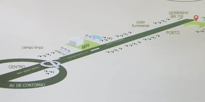 Quem sai da região do sisal não tem necessidade de ir até Feira de Santana, pois fica cerca de 5 km antes