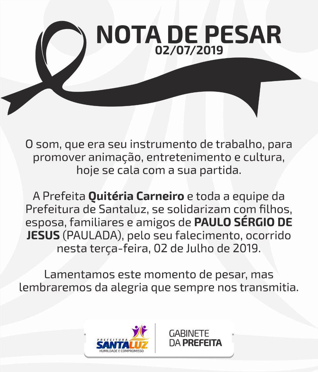 Prefeitura de Santaluz divulga nota de pesar