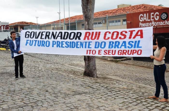 O governador Rui Costa (PT), foi recebido na manhã desta sexta-feira (19), em Nordestina, município localizado no território do sisal, com faixas indicativas a uma possível candidatura a presidente da república em 2022. As faixas eram seguradas por pessoas ligadas ao PSD, partido liderado pelo ex-prefeito Wilson Araújo.