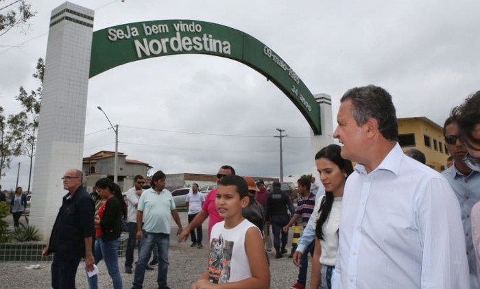 Em Nordestina, o governador Rui Costa entregou um Sistema Simplificado de Abastecimento de Água com dessalinizador, na localidade de Retiro, e autorizou a celebração de dois convênios do Projeto Bahia Produtiva, no âmbito dos editais ‘Qualificação de Agroindústrias’ e ‘Socioambientais Quilombolas’.