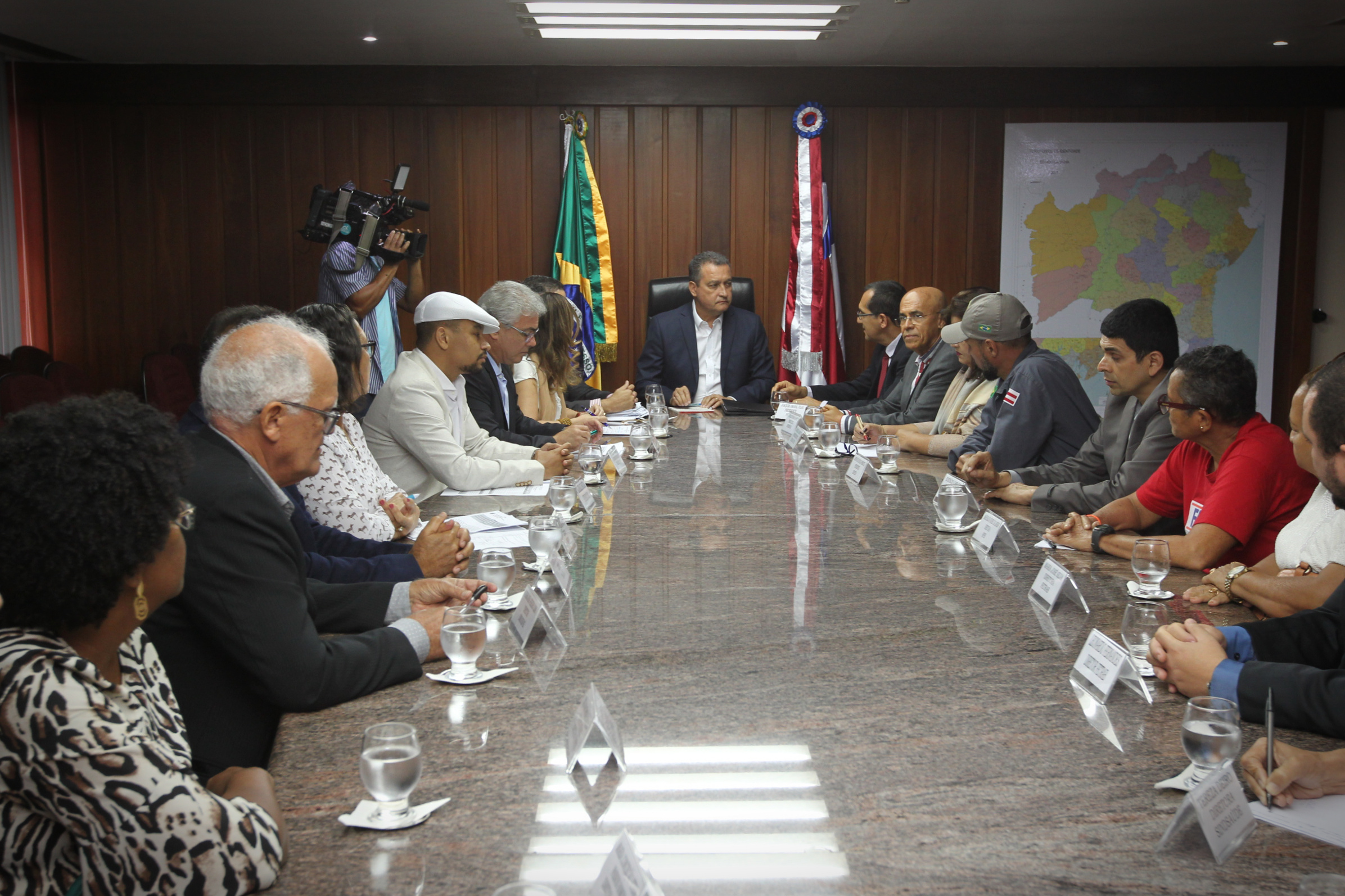 Uma reunião entre o governador Rui Costa e entidades sindicais que representam o funcionalismo público estadual marcou, na tarde desta sexta-feira (2), a assinatura de acordo para reestruturação da tabela de vencimentos dos auxiliares e técnicos administrativos de diversos órgãos estaduais que têm vencimentos básicos abaixo do salário mínimo. O encontro ocorreu na Governadoria, no Centro Administrativo da Bahia (CAB), em Salvador.