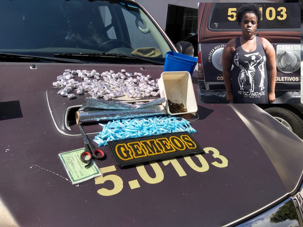 Detida anteriormente pelo mesmo crime e sendo monitorada por meio de tornozeleira eletrônica, Talita Santos de Jesus foi flagrada, mais uma vez, traficando drogas, na tarde de quinta-feira (22). Ela foi capturada por policiais da Operação Gemeos da Polícia Militar, que durante rondas para prevenir assalto a ônibus receberam denúncias sobre a venda de drogas no bairro da Cidade Nova. No momento da abordagem ela foi encontrada com 163 trouxas de maconha e 146 pinos com cocaína.