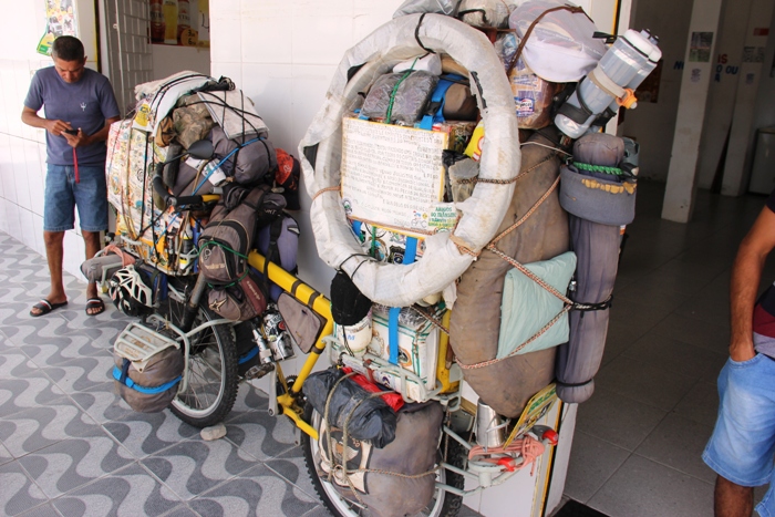 Marcos disse que conta muito com doações, pois, além de alimento precisa de peças para a bicicleta, em Coité recebeu doação de raios para colocar na jante da bicicleta e ele garante que foi de primeira qualidade e não é barato. Disse que encontra muita gente boa, mas gente ruim é bem mais.