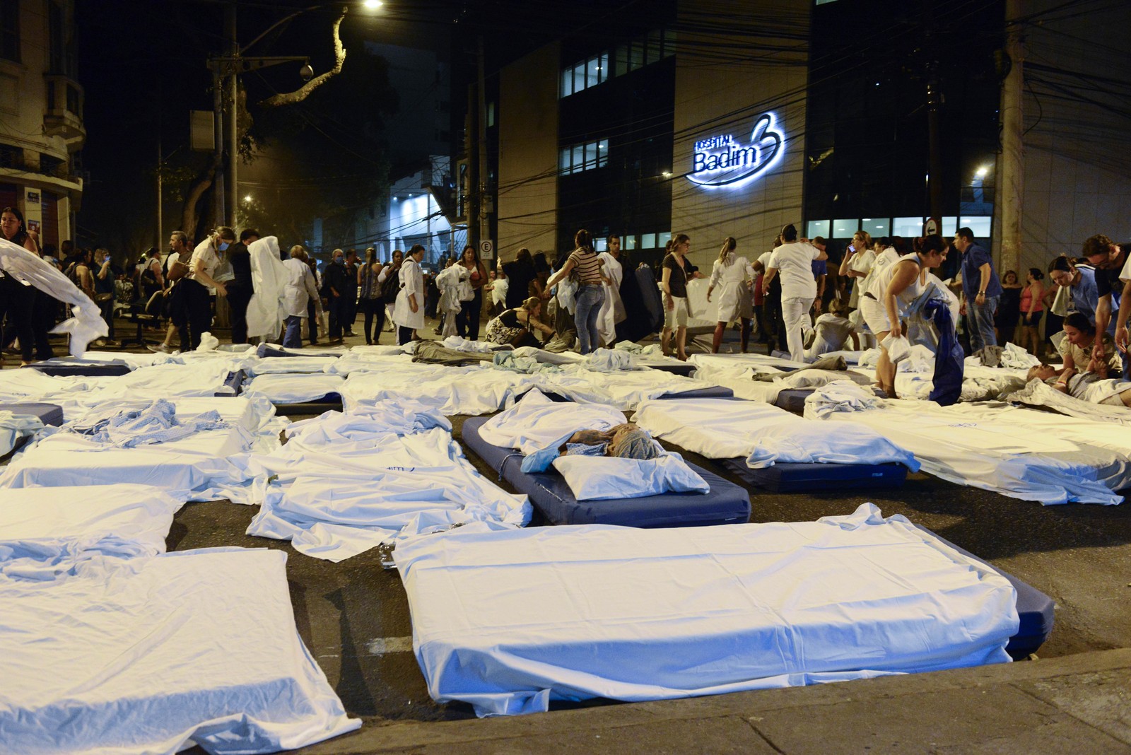Um incêndio atingiu o Hospital Badim, no Maracanã, Zona Norte do Rio, no fim da tarde desta quinta-feira (12). Funcionários montaram uma espécie de hospital na Rua São Francisco Xavier, com os colchonetes e lençóis que foram jogados pelas escadas para improvisar o atendimento. Equipes de salvamento informaram à GloboNews que uma pessoa que já tinha sido retirada morreu.