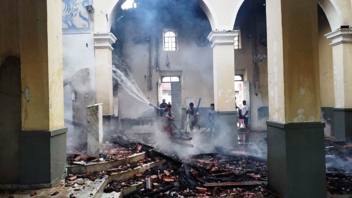 Construída em 1927, o templo ficou comprometido após um incêndio destruir a cobertura, a parte interna e peças sacras no Sábado de Aleluia, 20 de abril.