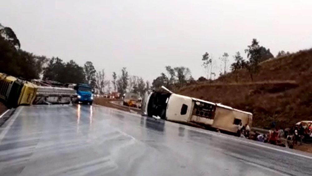 De acordo com a Via 040, que administra o trecho, os veículos bateram na altura do km 462, sentido BH. Em seguida o ônibus tombou sobre o canteiro central e a carreta tombou na pista. Chovia no momento do acidente.