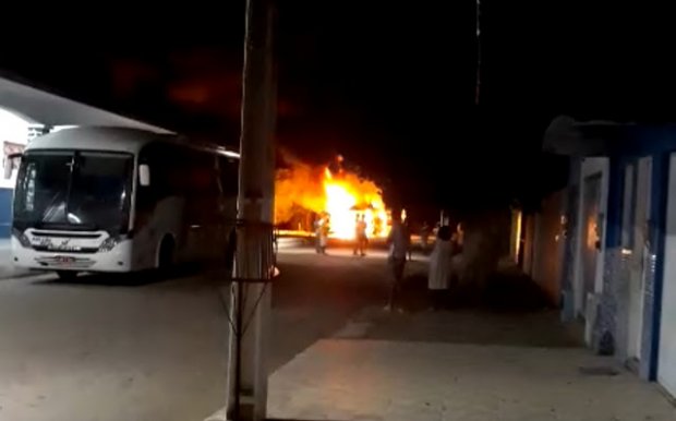 Na madrugada deste domingo, 22, um ônibus da empresa de transportes São Luiz pegou fogo no terminal rodoviário de Miguel Calmon.