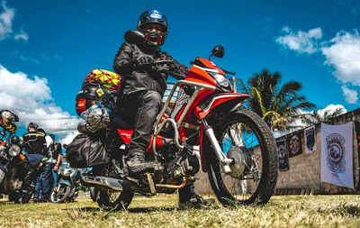 A personalização da motocicleta, pintura e acessórios segue o modelo da Honda Africa Twin 1000L.