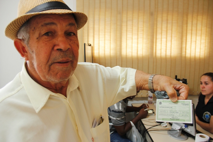O senhor Antônio Rodrigues, morador do Distrito de Aroeira tem 78 anos e está na relação do voto facultativo, vai a urna se quiser, mas contou com apoio de uma neta para fazer o agendamento e ao chegar segundo ele por espontânea vontade não perdeu tempo, saiu de lá com a cédula eleitoral nova escrito no cantinho eleitor biometrizado.