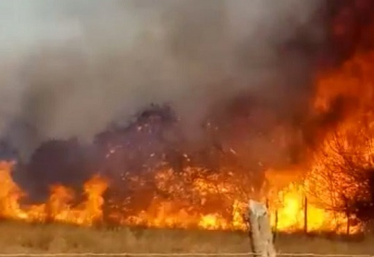 Um incêndio de grandes proporções atinge uma área de vegetação na zona rural da cidade de Abaré, no norte da Bahia.