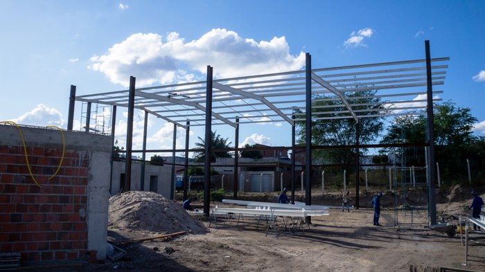 A nova unidade de ensino contará com 01 Pavilhão pedagógico composto por 06 salas de aulas, pavilhão administrativo e de serviço, pátio coberto e quadra poliesportiva coberta com vestiário.
