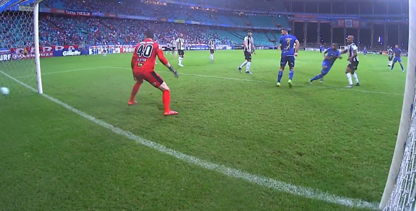 O Bahia foi em busca do empate e conseguiu aos 18. Flávio apareceu bem pela direita do ataque do Bahia, fez o cruzamento na área. Na primeira trave, Gregore desvia, e Élber aparece no meio da área para empurrar, de primeira, pro fundo das redes.
