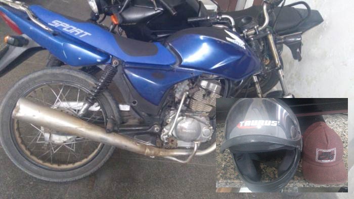 Bandidos abandonaram também capacete e boné e entraram em matagal
