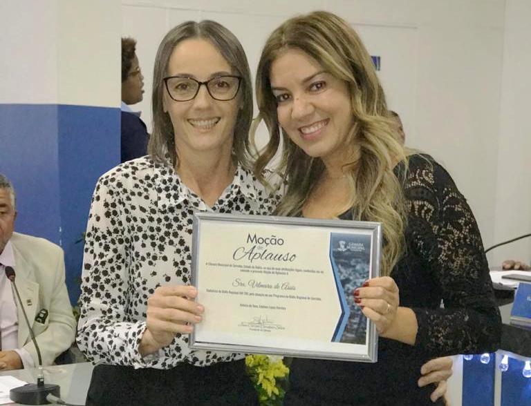 Em Sessão Especial na Câmara Municipal da cidade de Serrinha no fim da tarde de quinta-feira, 12, aconteceu a entrega de Moção de Aplauso a algumas personalidades que vêm se destacando nas mais diversas atividades, dentre elas a locutora Vilmara de Assis que tem metade de sua vida dedicada ao entretenimento no rádio.