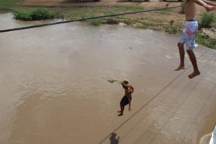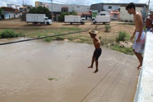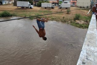 Alguns jovens chegam a se arriscar pulando da ponte que liga Bela Vista ao Centro da cidade. Com o público vibrando e assistindo a diversão perigosa, os garotos pulam diversas vezes e depois nadam até a margem. O repórter Agenor Filho do Site Jacuípe News registrou o momento.