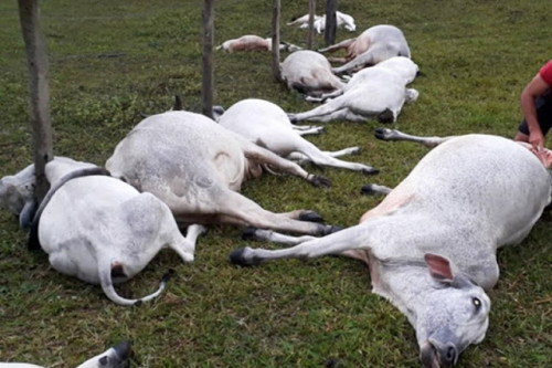 Um raio matou 16 bovinos, na tarde de sábado (04), na Fazenda Limoeiro, município de Itabela, sul do estado da Bahia. A informação é do site Radar 64.