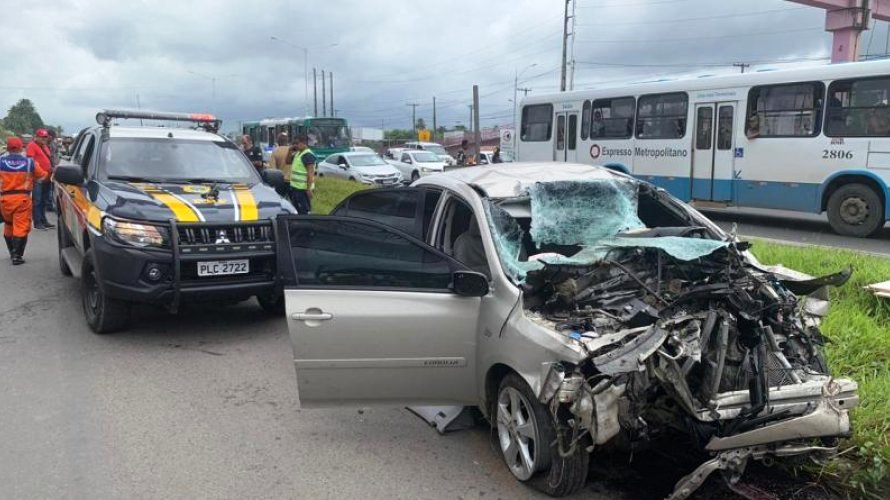 O motorista não obedeceu a ordem de parada e acelerou. Depois de 14 quilômetros de fuga, o condutor perdeu o controle do carro, colidiu com um caminhão e invadiu o canteiro da rodovia.
