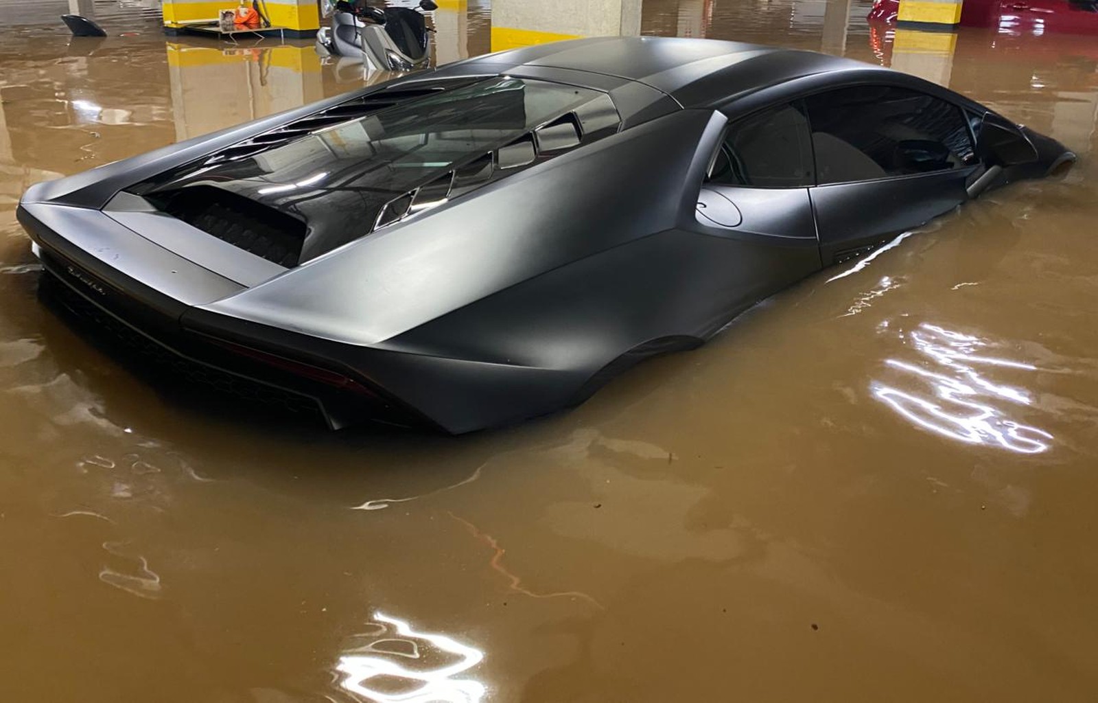 As fortes chuvas que causaram alagamentos em São Paulo no início da semana provocaram destruição pela cidade. Estacionamentos foram invadidos pela água e vários carros, até mesmo uma Lamborghini Huracán avaliada em R$ 1,6 milhão, foram atingidos.