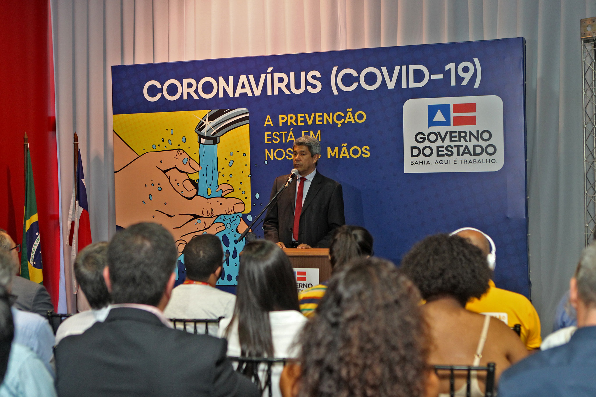 Com o slogan ‘A prevenção está em nossas mãos’, o Governo do Estado lançou uma campanha contra o coronavírus nesta terça-feira (17). A iniciativa reforça as medidas mais importantes a serem adotadas neste primeiro momento, como lavar as mãos, utilizar álcool em gel 70% e evitar lugares com aglomerações, procurando manter uma distância de um metro entre as pessoas. Participaram do lançamento os secretários de Comunicação Social, André Curvello, da Saúde, Fábio Villas-Boas, e da Educação, Jerônimo Rodrigues.