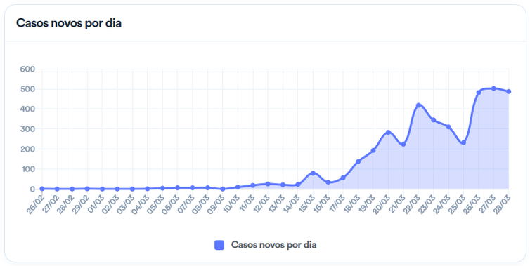 Veja a evolução do número de casos no país, desde o registro do primeiro caso: